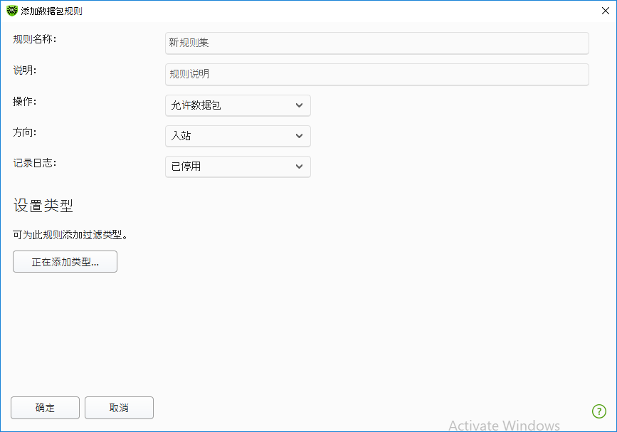 添加或编辑过滤规则的操作 1.在数据包过滤器规则集编辑窗口点击 ![]() 图58. 添加过滤规则 2.请指定下列规则参数: