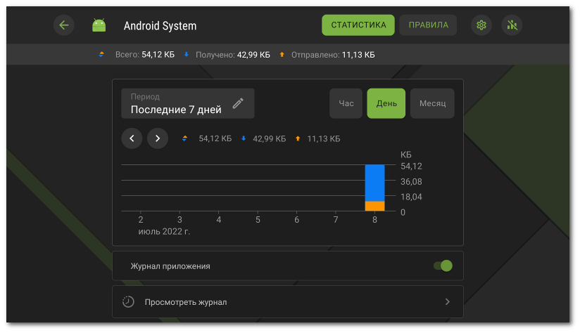 Брандмауэр Dr.Web позволяет настроить обработку интернет-трафика на уровне приложений и, таким образом, контролировать доступ программ и процессов к сетевым ресурсам. Ознакомиться с информацией об интернет-трафике, используемом установленным на вашем устройстве приложением, а также настроить для него правила доступа к сетевым ресурсам вы можете на экране приложения (см. Рисунок 40). На экране доступны две вкладки: •Статистика, где вы можете просмотреть статистику использования интернет-трафика, а также изменить индивидуальные настройки приложения. •Правила, где вы можете управлять правилами соединений, инициируемых приложением. Группа приложений Некоторые служебные приложения могут быть объединены в группу. Чтобы просмотреть список приложений, входящих в группу, на экране приложения нажмите на счетчик справа от заголовка Группа приложений. |